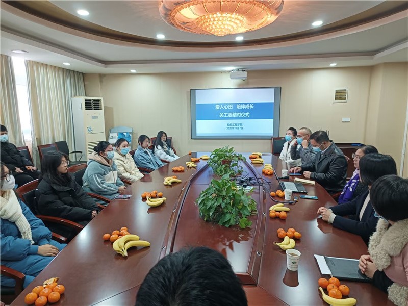 为做好贫困生的帮扶工作,将新时代离退休老干部关心下一代心愿落到实处,12月7日,学院关工委组织老教师与贫困学生进行二级关工委结对仪式,落实一对一、一对多关爱帮扶结对,完成15名困难学生结对工作。学校关工委组织代表蒋治国、船舶工程学院关工委“五老”成员席秀珍、学院领导、相关师生共同参加了此次活动。