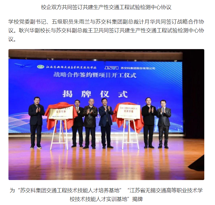 今日头条:无锡交校与苏交科集团举行战略合作签约暨生产性试验检测中心项目开工仪式