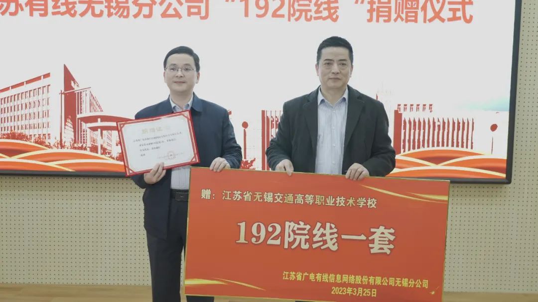 启动仪式上,倪依纯副校长对江苏有线对此次活动的支持表示衷心的感谢,希望广大同学们积极参与今年校园读书节各项活动,在校园内掀起读书热潮,让教育充盈书香,让书香浸润心灵。启动仪式上,学校83级校友—中远海运(北美)有限公司副总裁顾泉林向学校捐赠自己写作出版的著作并专程录制视频寄语母校师生。江苏有线无锡分公司向学校捐赠“极视影院”,该院线融合江苏有线自有影视资源,将为学校师生文体活动中带来大屏端观影体验。