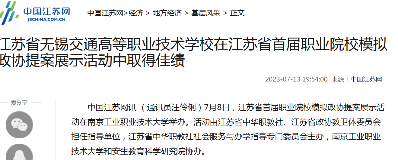 MILAN.COM在江苏省首届职业院校模拟政协提案展示活动中取得佳绩_中国江苏网 (jschina.com.cn)