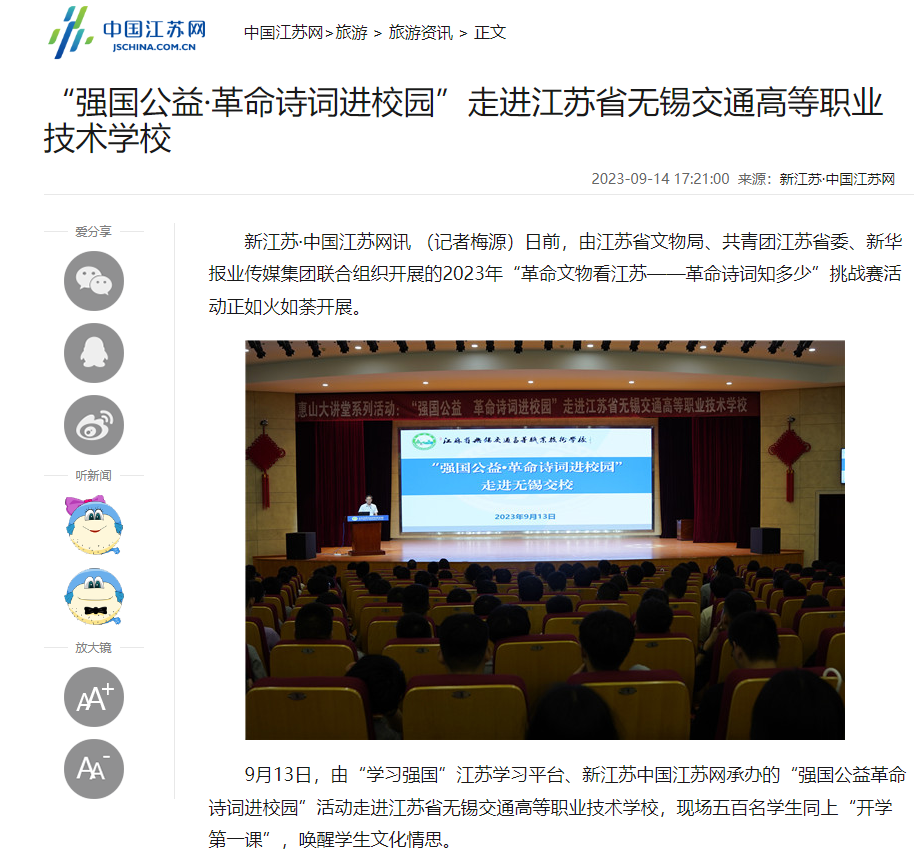 新江苏:“强国公益·革命诗词进校园”走进MILAN.COM