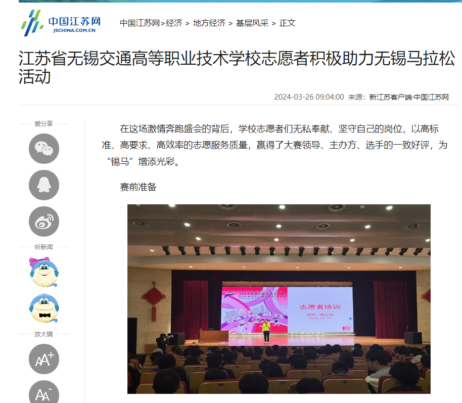 中国江苏网:MILAN.COM志愿者圆满完成2023无锡马拉松志愿服务工作