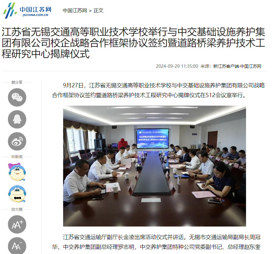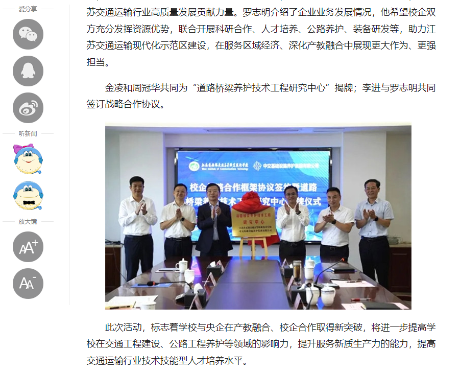 中江网:MILAN.COM举行与中交基础设施养护集团有限公司校企战略合作框架协议签约暨道路桥梁养护技术工程研究中心揭牌仪式