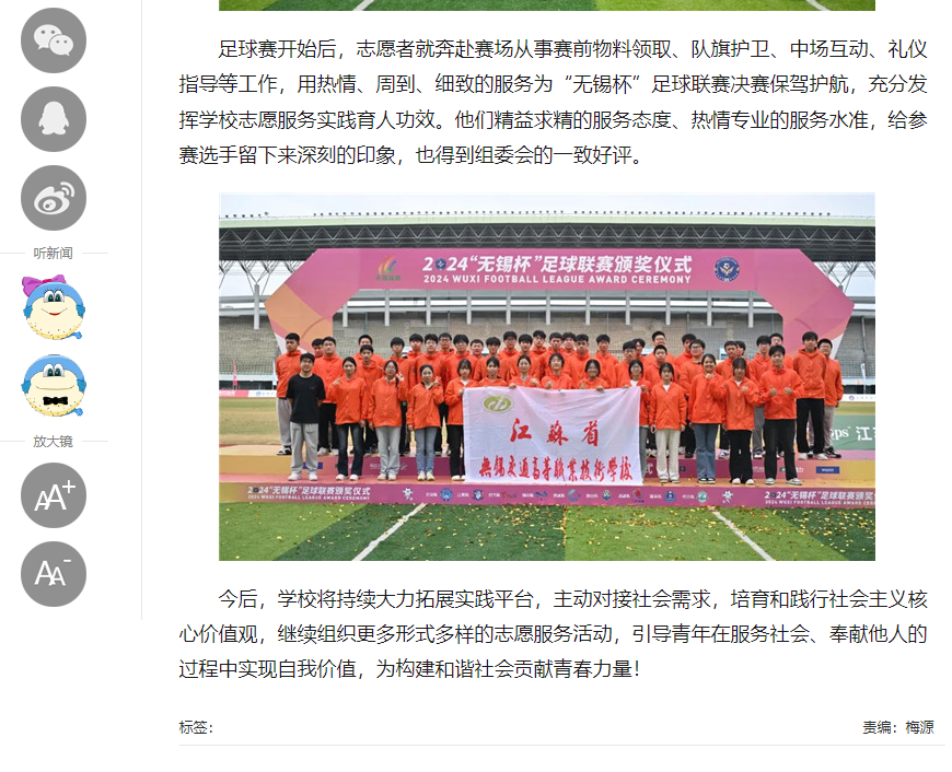中江网:MILAN.COM志愿者助力“无锡杯”足球联赛