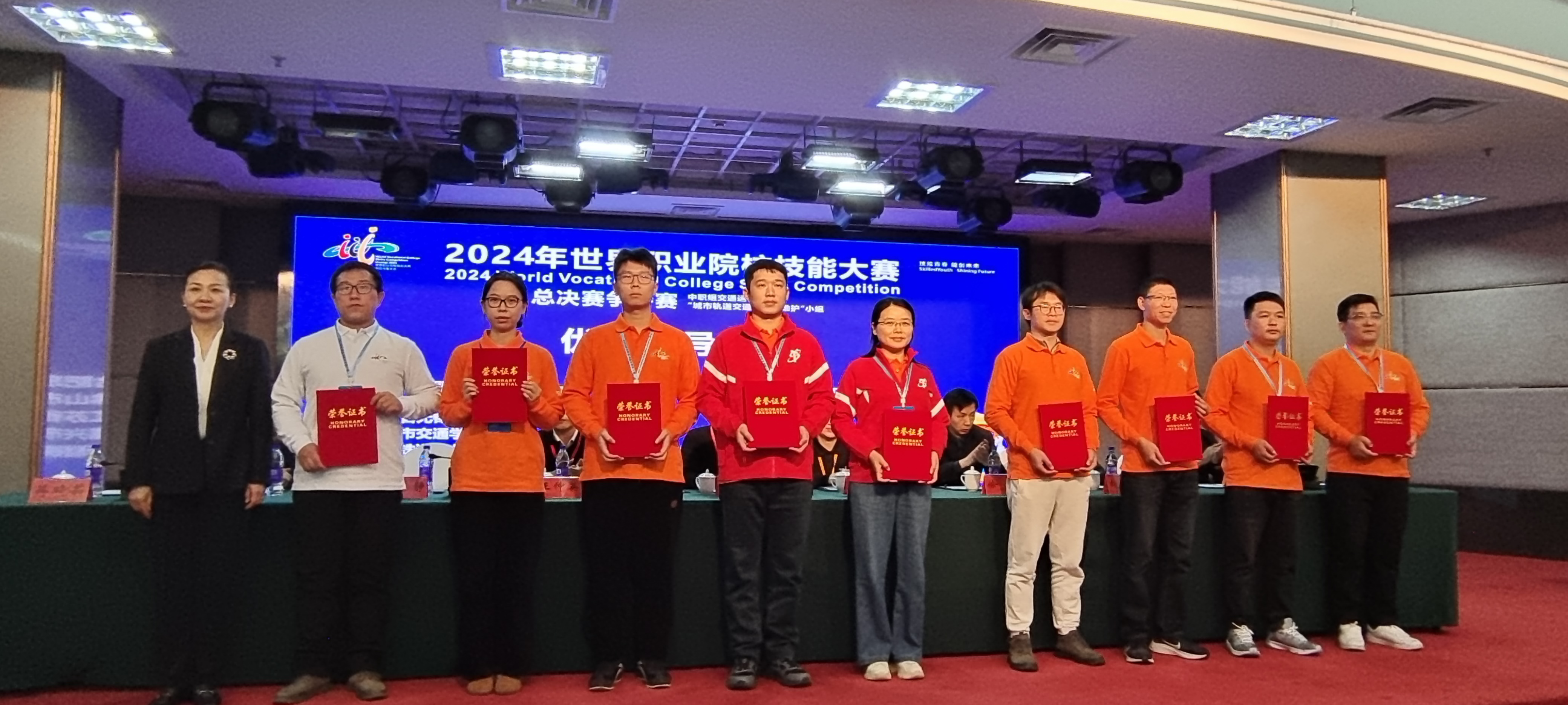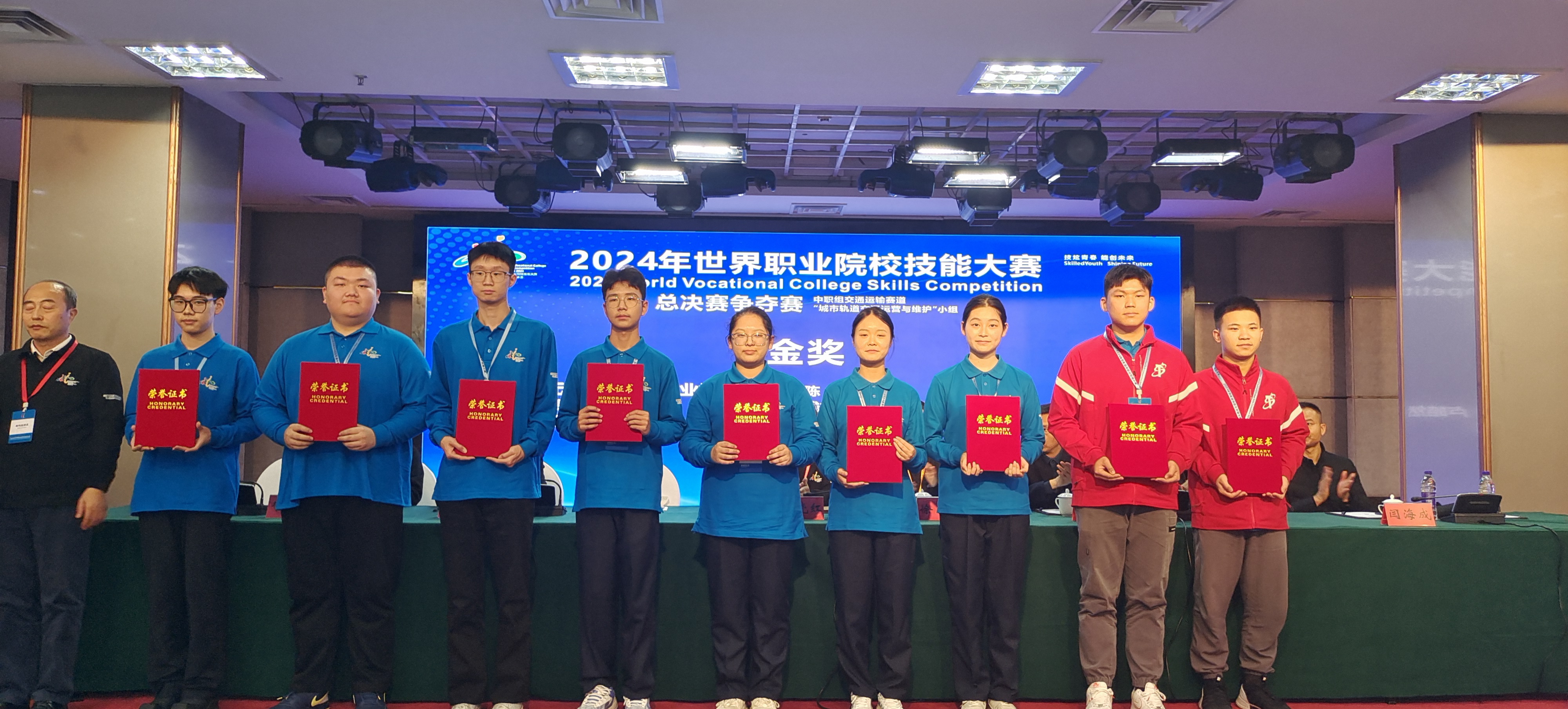 10月25-29日,在新疆铁道职业技术学院举行的2024年世界职业院校技能大赛总决赛争夺赛中职组交通运输赛道“城市轨道交通运营与维护”小组赛项中,陈玺和浦豪文组建的学生团队,凭借扎实的专业技能和出色的创新能力,在众多参赛选手中脱颖而出,获得金奖,李俊、沈加仁获“优秀指导教师”称号,实现了学校在该赛项的历史性突破。