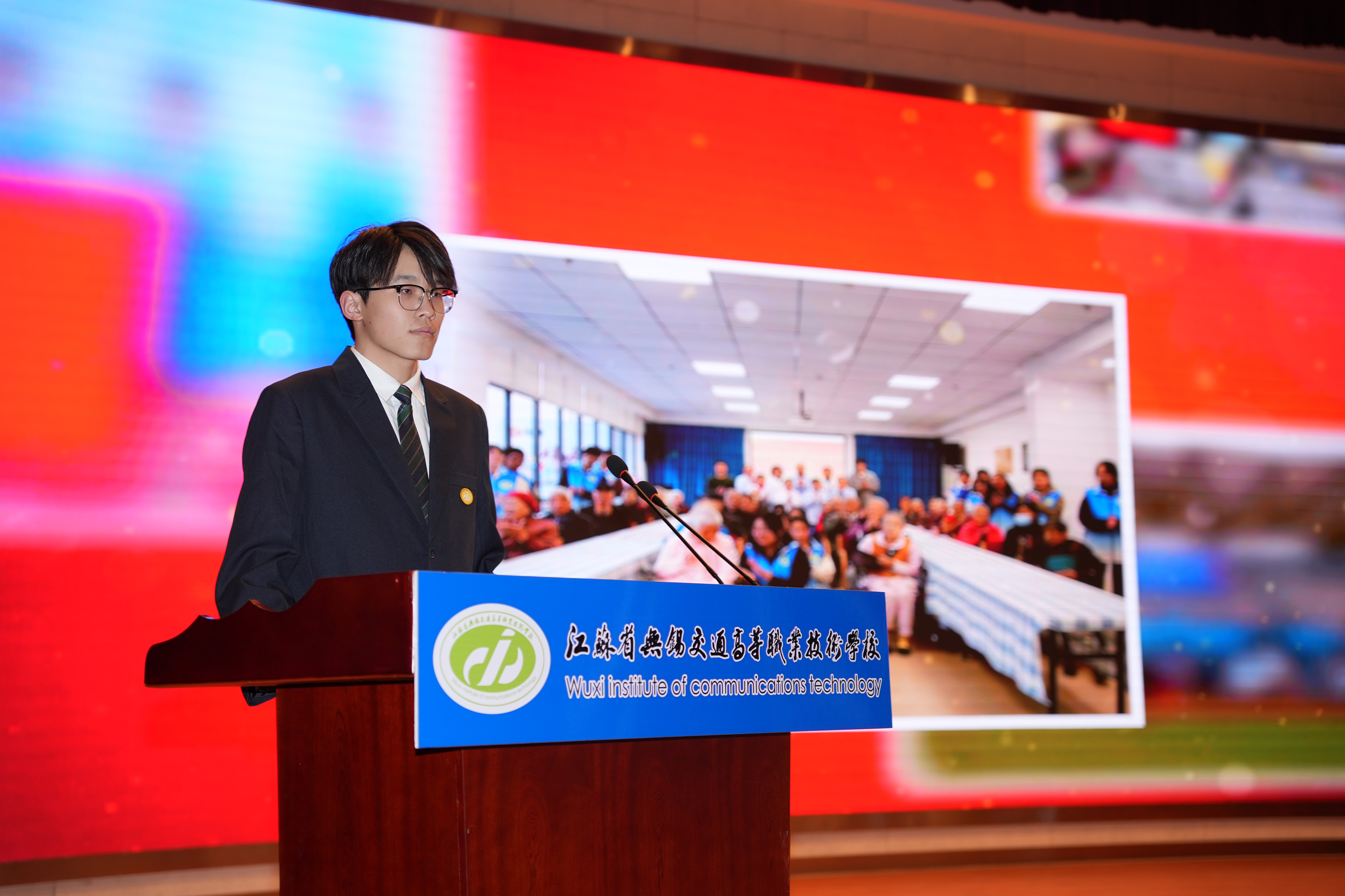 学校青年志愿者代表、船舶工程学院缪渝磊向全校广大青年志愿者发出倡议:坚定理想信念,争做雷锋精神传承者;主动参与志愿服务,争做雷锋精神践行者;积极弘扬社会正气,争做雷锋精神传播者。