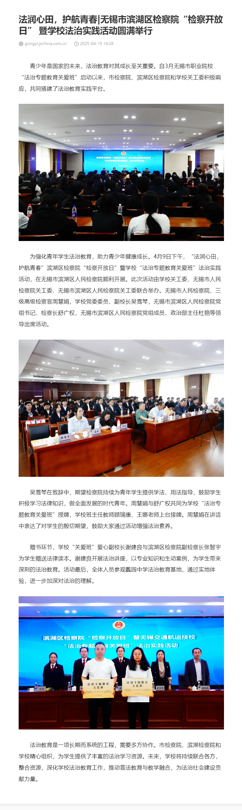 中江网:法润心田,护航青春|无锡市滨湖区检察院“检察开放日” 暨学校法治实践活动圆满举行