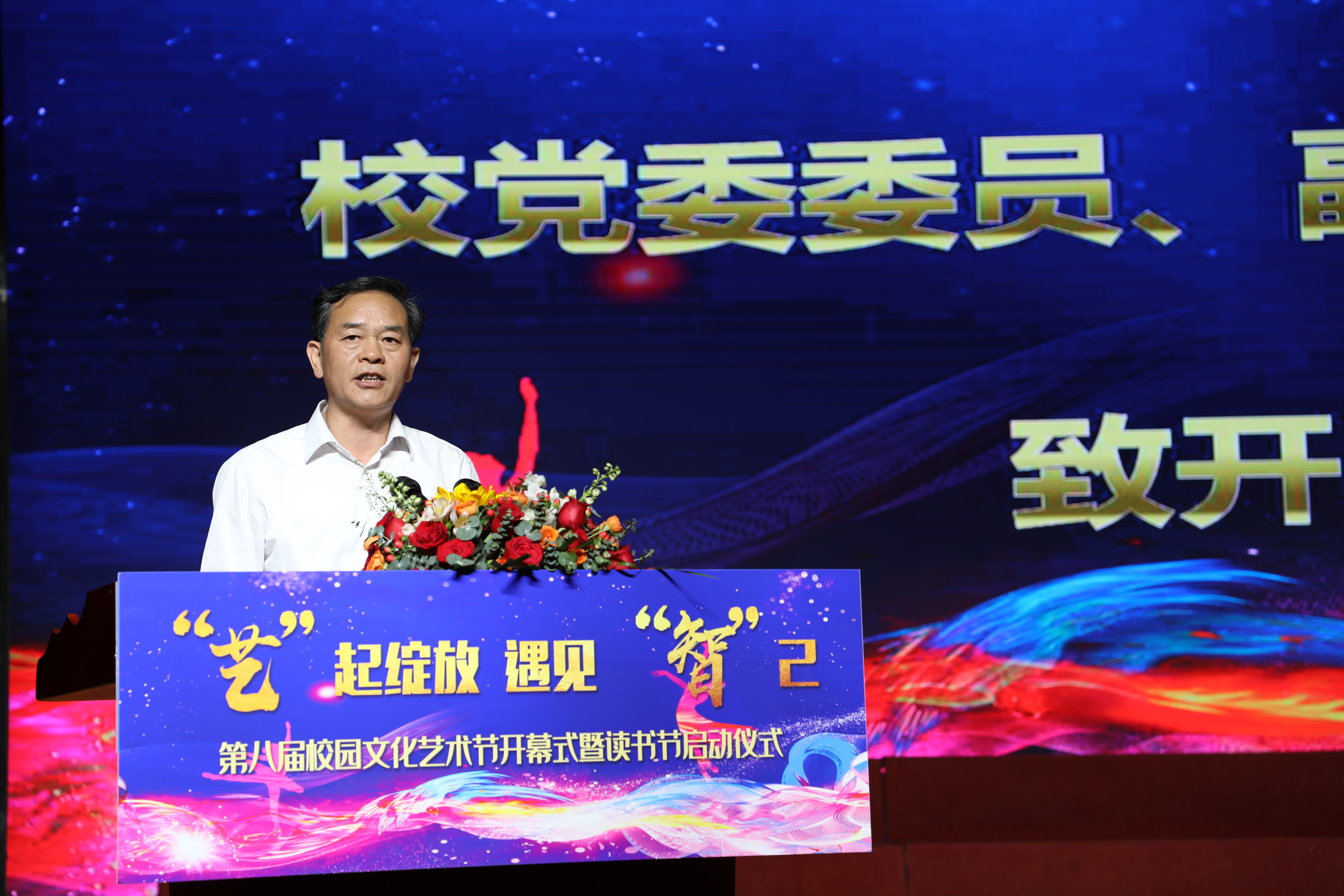 学校党委书记、校长李进宣布:“第八届校园文化艺术节正式开幕!”现场掌声雷动,气氛热烈。