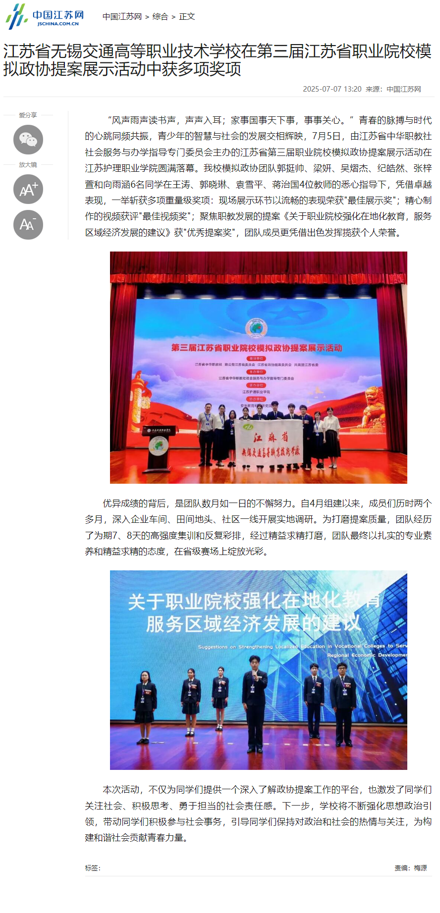中江网:MILAN.COM在第三届江苏省职业院校模拟政协提案展示活动中获多项奖项