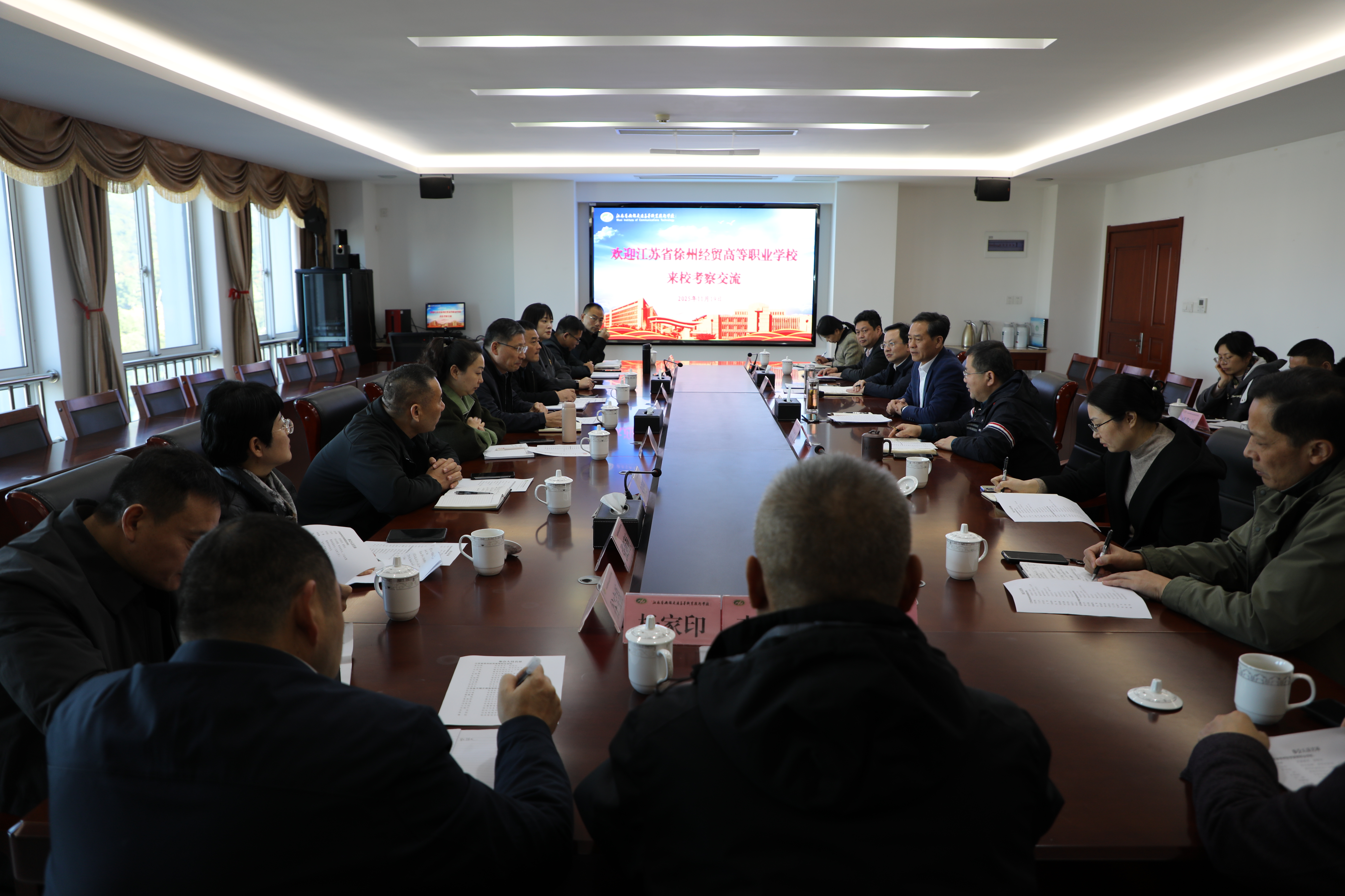 11月19日下午,江苏省徐州经贸高等职业学校副校长袁剑锋一行莅临学校开展考察交流。学校校长耿兴华、副校长范次猛参加会议,两校相关职能部门负责人及二级院系代表参与交流。