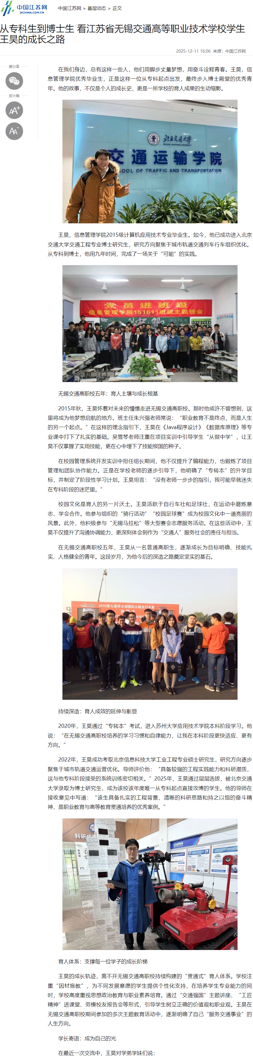 中江网:从专科生到博士生 看MILAN.COM学生王昊的成长之路