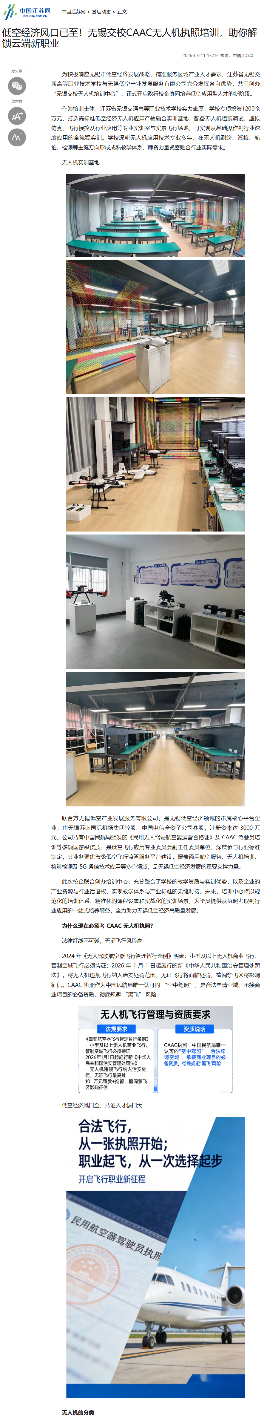 交汇点新闻:低空经济风口已至!无锡交校CAAC无人机执照培训,助你解锁云端新职业