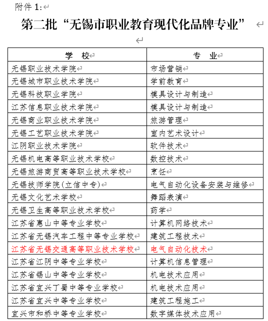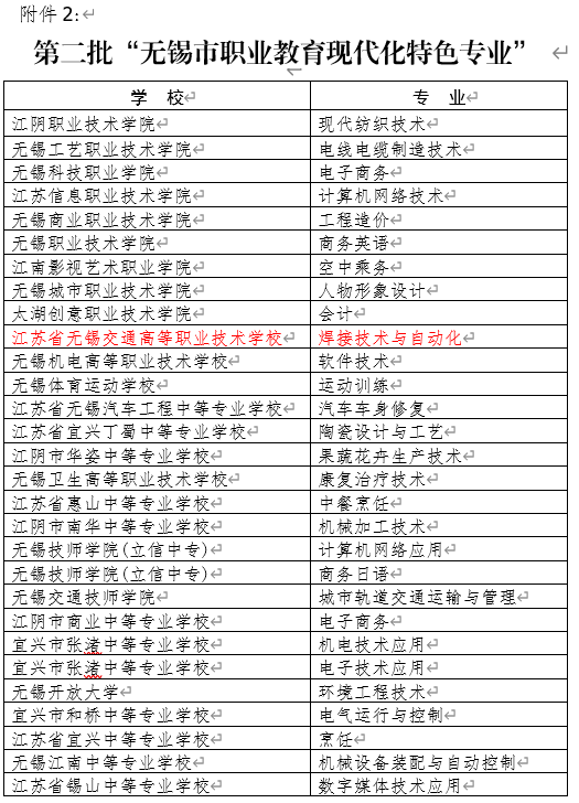 附件:1.第二批“无锡市职业教育现代化品牌专业”名单