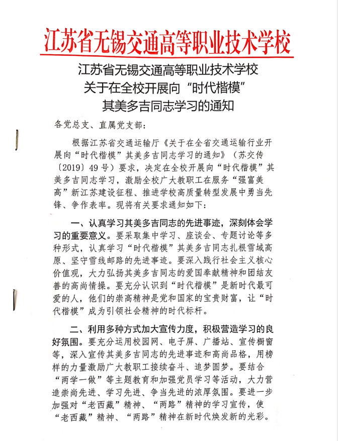关于在全校开展向“时代楷模”其美多吉学习的通知