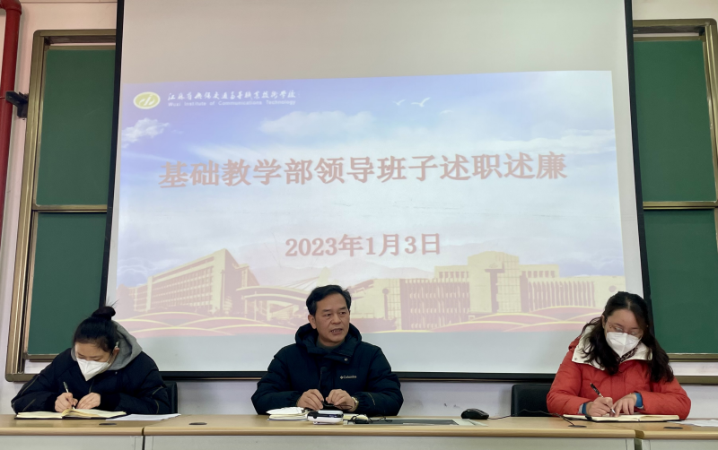 2023年1月3日上午,基础教学部在阶梯506教师召开2022年度述职述廉评议会。学校党委委员、副校长耿兴华,基础教学部党总支副书记杨凤琴出席会议,会议由基础教学部副主任许莹霞主持。