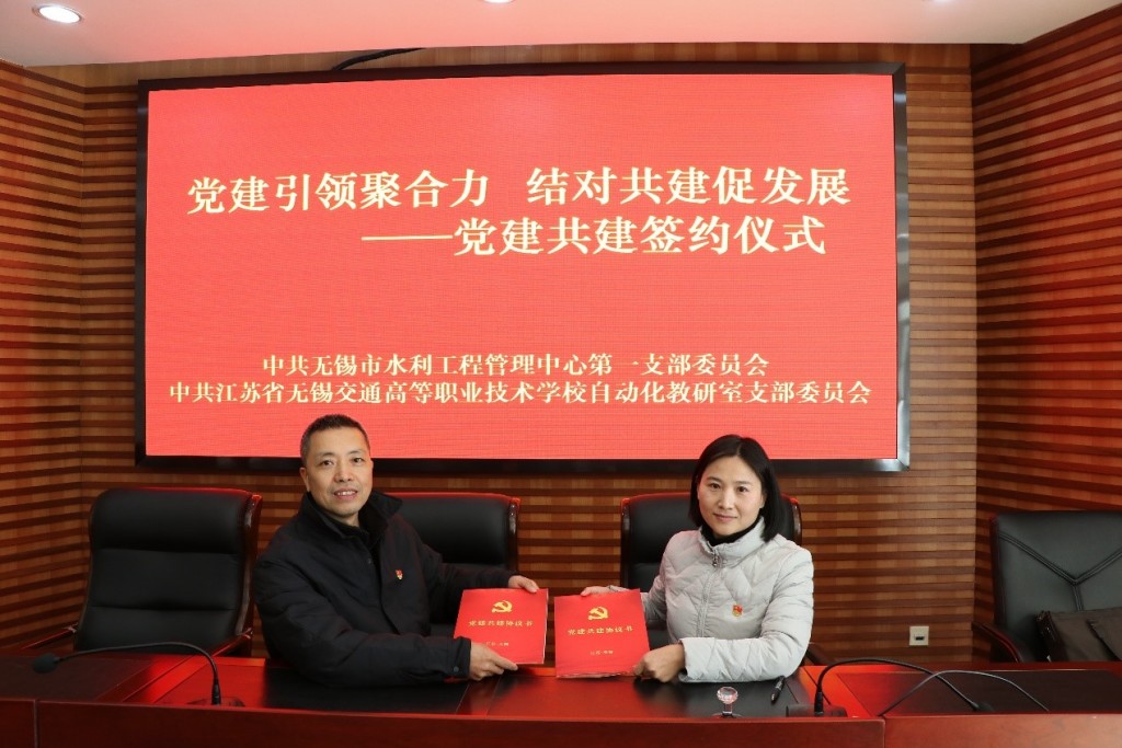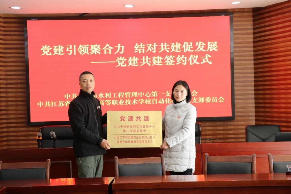 为深入学习贯彻党的二十大精神,践行敢为、敢闯、敢干、敢首创的“四敢”精神,进一步优化整合党建资源,丰富党建品牌建设内涵,2023年2月15日下午,机电工程学院自动化教研室党支部与无锡水利工程管理中心第一党支部举行党建联盟签约仪式,签约仪式在无锡市水利工程管理中心(以下简称“中心”)举行。校党委委员、副校长耿兴华,机电工程学院党总支书记徐小国,机电工程学院院长夏春荣,机电工程学院自动化教研室党支部书记孔喜梅,无锡市水利工程管理中心党总支副书记、副主任赵欢,无锡市水利工程管理中心第一支部书记、副主任边晓阳,以及双方支部代表出席活动,活动由中心副主任边晓阳主持。