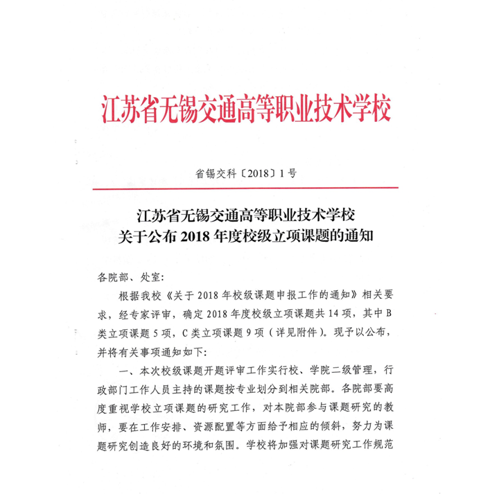 关于公布2018年度校级立项课题的通知
