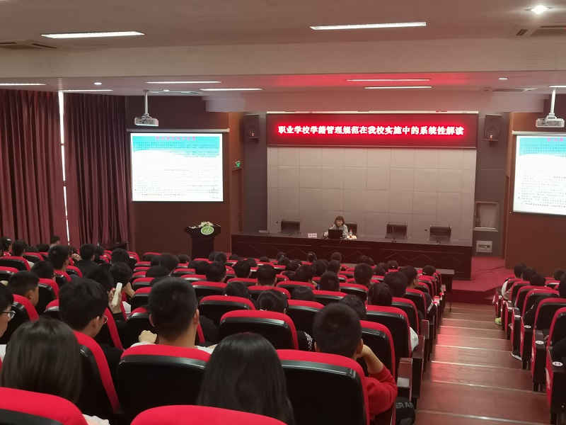 2019年10月16日下午,交通工程学院在校学术报告厅举行“职业学校学籍管理规范在我校实施中的系统性解读”的专题学术报告会。