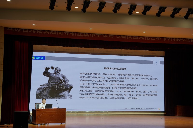 为深入学习宣传贯彻党的二十大精神,弘扬劳模精神、劳动精神和工匠精神,激励同学们爱岗敬业、艰苦奋斗、锐意创新,引导同学们成人成才。5月22日,学校邀请江苏工匠获得者-无锡贝斯特精机股份有限公司工程研究院院长、首席工艺师宋树新来校开展“以工匠精神引领高职教育,让技能成就人生”为主题的“工匠进校园”讲座。学校教务处、各学院领导、骨干教师、学生代表600余人参加此次活动。