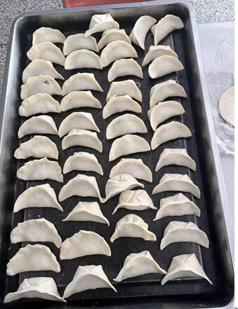 活动中,食堂的工作人员为学生们准备好了包饺子的食材和用具,大家洗净双手、撸起袖子,忙得不亦乐乎。在大家的共同努力下,不到一个小时,餐盘里就摆满了或大或小,花样繁多,充满创意的饺子。看着自己包的饺子,学生们的脸上露出了自豪的笑容。食堂工作人员将饺子送到厨房,不一会儿,一盘盘热气腾腾的饺子在大家期待的目光中被端上了餐桌,香气四溢。同学们品尝着自己亲手制作的饺子,幸福满满。