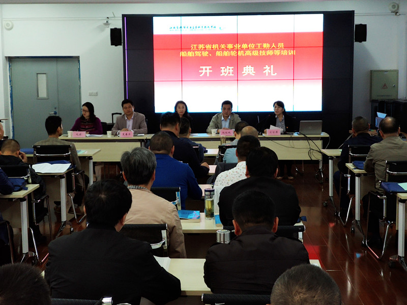 2019年江苏省机关事业单位船舶驾驶、轮机高级技师、技师、初、中、高级工培训班于10月18日上午8:30在我校钱荣校区举行。江苏省人力资源和社会保障厅工考办徐俊芳主任、我校倪依纯副校长莅临开班典礼,开班典礼由继续教育学院夏春荣院长主持。本次培训班共有学员40人。