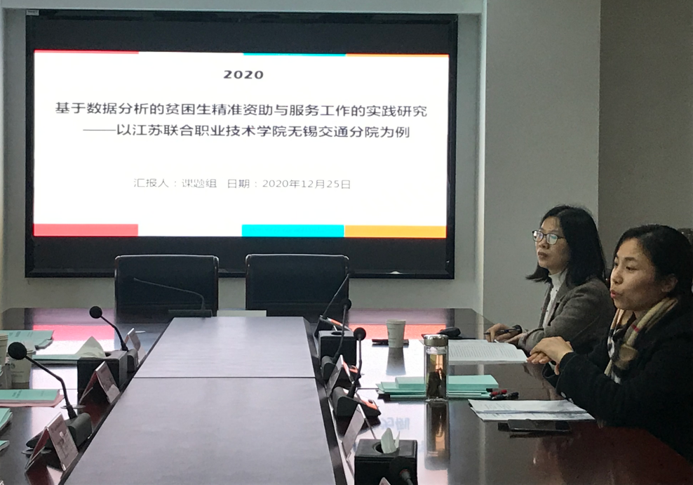 此次结题课题有吴雪琴、蒋红梅主持的省“十三五”规划学生资助专项《基于数据分析的贫困生精准资助与服务工作的实践研究——以江苏联合职业技术学院无锡交通分院为例》,尹爱华主持的省教改课题《产教融合背景下新能源汽车实训基地建设的研究与实践》共2项。鉴定会上,根据鉴定要求,课题组从研究目标和意义、过程、主要结论与分析等方面进行重点汇报,评审专家逐一进行提问和建议,课题组进行了答辩。评审专家一致认为两项课题研究成果丰富,具有一定的实践指导意义。同时,也针对课题研究中存在的问题进行了指导,提出了中肯的意见和建议。