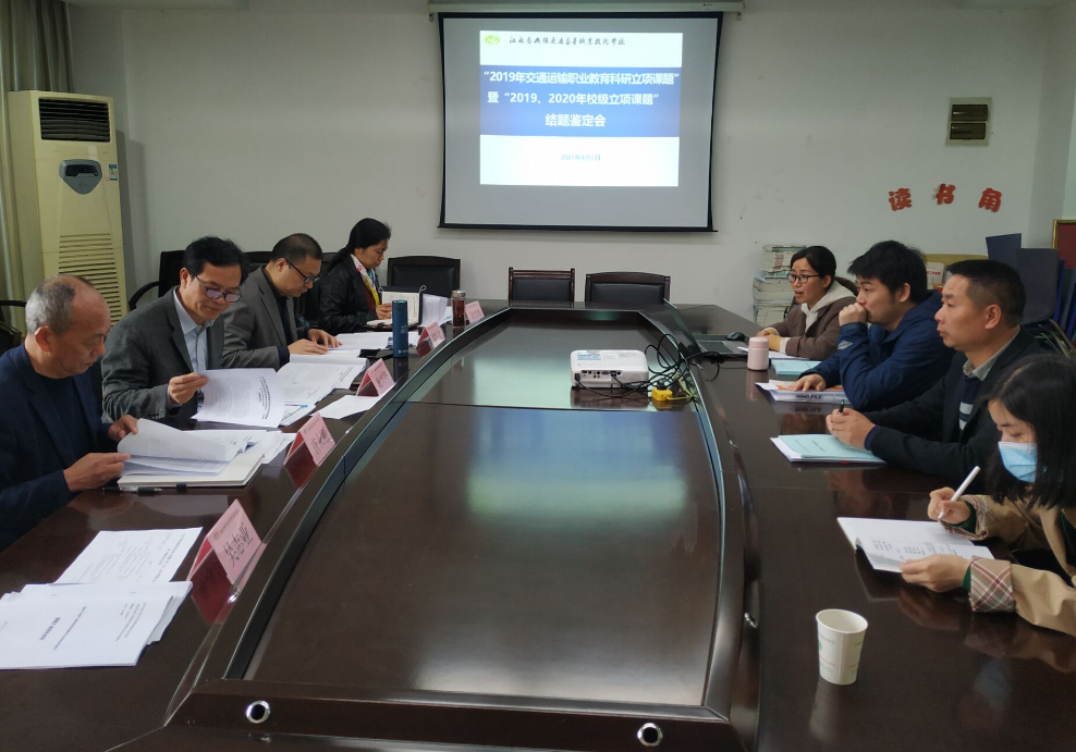 2021年4月1日上午,学校召开“2019年交通运输职业教育科研立项课题”暨“2019、2020年校级立项课题”结题鉴定会。特邀无锡市教育科学研究院奚军副教授、校学术委员副主任耿兴华副校长及其他8名委员组成的专家评审组,对8项课题进行了现场评审。评审会分两个会场,分别在船舶工程学院、机电工程学院会议室同时进行。会议由科技与合作处处长尹爱华主持。
