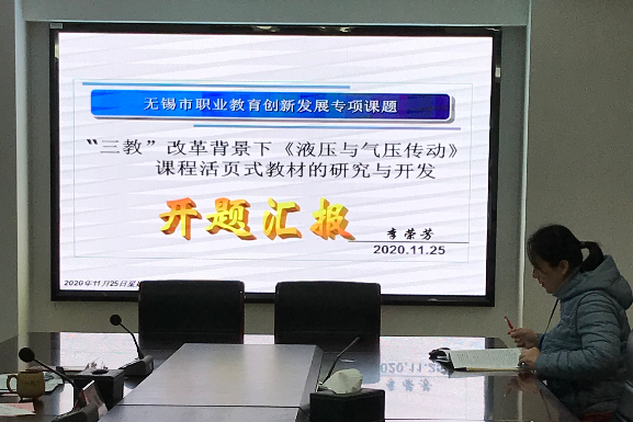 会议对茹新宇老师主持的重点课题“‘新基建’背景下五年制高职专业改造与创新研究——物流管理专业为例”、郑军武老师主持的“汽车领域1+X 证书制度的实践研究”、李荣芳老师主持的“三教”改革背景下《液压与气压传动》课程活页式教材的研究与开发”两项一般课题进行了开题论证。