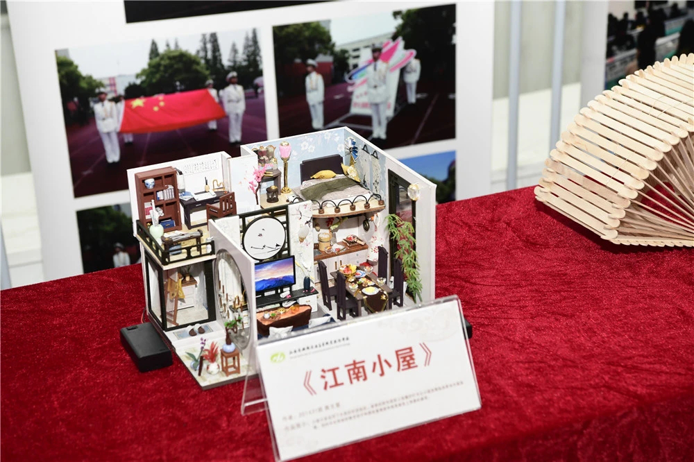 此次手工作品展种类繁多,美轮美奂。每个展区里,展台上一份份精致小巧,精雕细琢的作品皆赢得广大师生的驻足观赏、评鉴。有出自首届校园手工制作大赛的优秀作品《羊毛毡》、《苏州园林》、《江南小屋》、《盒子剧场》,也有学生社团刻纸社的《连年有鱼》、《金狗纳福》,拙巧手工坊的《九霄云鹤头饰》、《玫瑰刺绣》,绿苑文学社的《蓝晒作品》、《扎染作品》,船模社的《青岛舰》、《远望4号》等近百幅作品。每件作品都独具匠心、构思巧妙,参观的师生对各式各样的造型和惟妙惟肖的作品无不啧啧称赞。