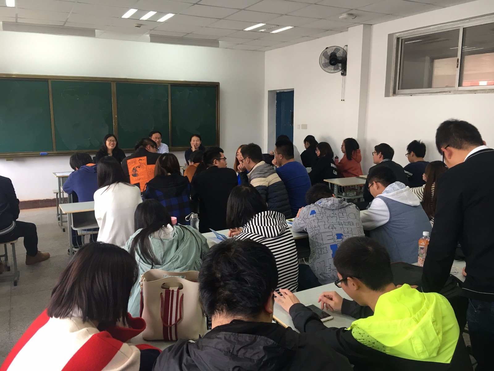 郑智飞院长与同学们分享了自己学习十九大精神的体会,十九大报告是党和国家未来未来五年发展的纲领性文件,是为全国各族人民绘制的美好蓝图,要求同学们要认真学习领会,认真规划自己的奋斗目标。还建议同学们从“态度、制度、风度”上严格塑造和提升自己。一是人立于世无论何时首先都要保持端正的态度;二是驰骋职场要想获得成功必须遵守严格的制度;三是个人素养与内涵的提升需要具有优雅的风度。希望同学们努力把持三个“度”,早日成为一个成功者。