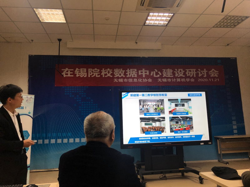 11月21日下午,无锡市信息化协会和无锡市计算机协会在无锡商业职业技术学院联合举办在锡院校数据中心建设研讨会,我校图文信息中心应邀参加会议,在锡院校信息化部门负责人参加会议。会上,无锡市信息化协会、无锡商业职业技术学院和华为技术有限公司分享了智慧校园总体框架解读、数据中心建设和5G+云中校园的建设经验。