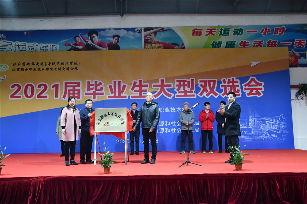 启动仪式上学校船舶工程学院、交通工程学院、物流管理学院分别与富士通将军中央空调(无锡有限公司)、江苏赛华建设监理有限公司、北京京东乾石科技有限公司等企业签订校企合作协议,同时举行学校与北京乾石科技有限公司的京东物流人才培养基地揭牌式。