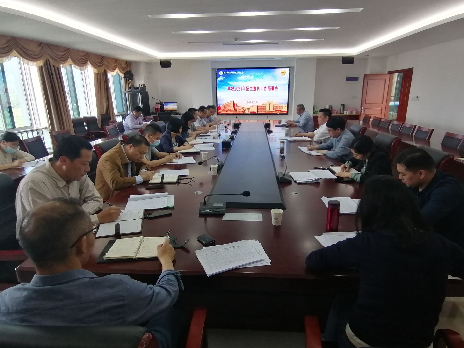 招生就业处刘学军处长结合当前招生面临的总体形势、对学校2021年招生宣传工作实施方案、分工安排、注意事项等方面进行了详细解读和工作部署。